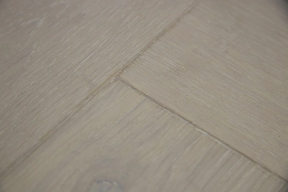 Are you on the lookout for a subtle, neutral looking floor? Do you want something that will blend in, no matter how often you change your interior? If so, this natural engineered oak solution, in bespoke herringbone that’s bianco hardwaxed oiled is likely to be right up your street.